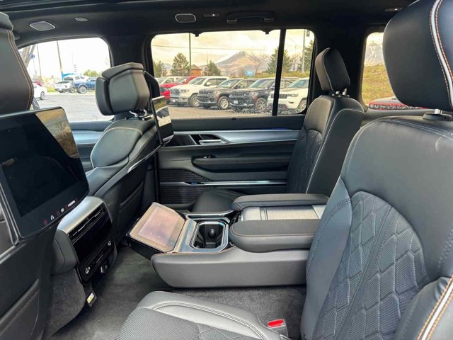 Delivers 20 Highway MPG and 14 City MPG! This Jeep Grand Wagoneer boasts a Twin Turbo Premium Unleaded I-6 3.0 L/183 engine powering this Automatic transmission. WHEELS: 22 X 9.0 PAINTED ALUMINUM, TRANSMISSION: 8-SPEED AUTOMATIC (8HP75) (STD), TIRES: 285/45R22XL BSW ALL SEASON (STD).*This Jeep Grand Wagoneer Comes Equipped with These Options *QUICK ORDER PACKAGE 28W -inc: Engine: 3.0L I6 Hurricane HO Twin Turbo ESS, Transmission: 8-Speed Automatic (8HP75) , REAR SEAT VIDEO GROUP 1 -inc: Video USB Port, Seatback Video Screens, Amazon Fire TV Built-In, MONOTONE PAINT APPLICATION, GVWR: 7,700 LBS (STD), GLOBAL BLACK, PREMIUM LEATHER TRIMMED BUCKET SEATS, ENGINE: 3.0L I6 HURRICANE HO TWIN TURBO ESS (STD), EMBOSSED METAL INTERIOR ACCENTS, DIAMOND BLACK CRYSTAL PEARLCOAT, BODY COLOR ROOF -inc: Monotone Paint Application, Wheels: 22 x 9.0 Premium 4 Aluminum.* Stop By Today *Live a little- stop by Larry H Miller Chrysler Jeep Dodge RAM Provo located at 1825 N. University Parkway, Provo, UT 84064 to make this car yours today!